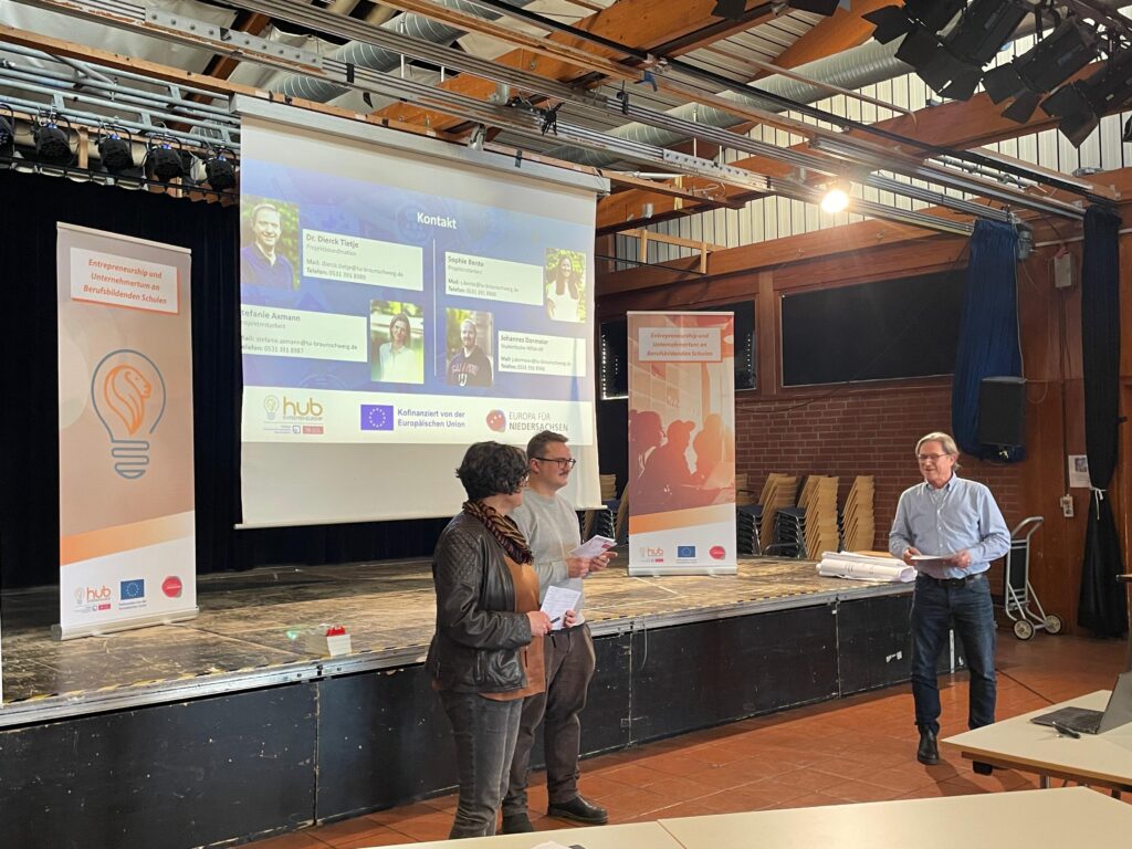 Der Workshop wurde von Martin Ohlendorf, WiSta Gifhorn, organisiert und von Expert:innen des Entrepreneuership Hubs der Technischen Universität Braunschweig durchgeführt. Seit Mitte letzten Jahres bieten diese Workshops an Berufsbildenden Schulen an, um ihr Wissen auch in dem Ausbildungszweig zu etablieren. Das Projekt „Entrepreneurship und Unternehmertum an Berufsbildenden Schulen“ wird aus dem europäischen Sozialfond und von regionalen Förderern finanziert. Das Angebot gilt als wichtiger Baustein zur Förderung von Innovationskompetenz und beruflicher Orientierung.